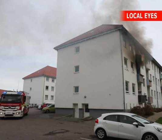 Flammerne er på lejlighedens altan, men giver røggener i...