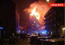 En kraftig brand raserer mandag aften Hyltebjerg Kirke på Ålekistevej 91.Det forlyder at flere end 15 brandkøretøjer er sendt til stedet.dddDet øverste af kirken...