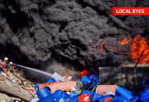 ***OPDATERING: Kort før klokken 18 blev varslingen ophævet af politiet.En kraftig brand raserer torsdag eftermiddag på industrivej 5 i Grindsted.Branden udvikler giftig røg og...