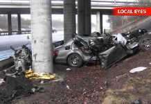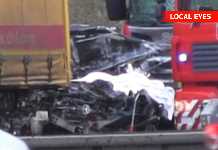 Bil kørte ind i betonpille på motorvej: Motorblokken fløj flere meter væk