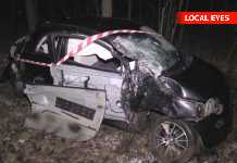 En 21-årig kvinde sad kvæstet i en forulykket bil kort over midnat til søndag.Da kvinden blev fundet blødte hun meget fra hovedet, men...