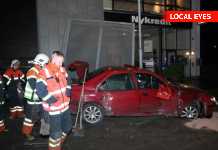 Bil påkørte Nykredit: Bilisten flygtede fra stedet