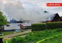 Alarm om husbrand: Trelænget stråtækt landejendom nedbrændt