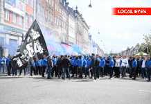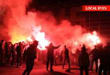 KØBENHAVN: Som optakt til søndagens kamp er FCK fans på gaden, og der er stadigvæk godt med kanonslag og romerlys til at sætte fart...