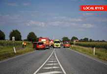 VAMDRUP: Den voldsomme ulykke skete omkring kl. 16.00, og ifølge de forløbige oplysninger kørte to biler sammen på stedet.Den angiveligt hårdt kvæstede 19-årige mand...