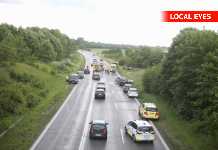 Voldsom ulykke på Hillerødmotorvejen: Tre biler i voldsom kollision