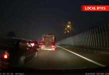 Morgenbilist overhaler to biler i sammenfletning på motorvej