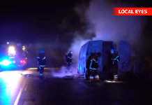 En varevogn er sent lørdag aften udbrændt på landevejen ved Gudbjerg på Fyn.Det var en politipatrulje, der tilfældigvis kom forbi, som spottede den brændende...