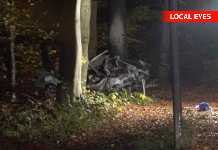 KLAMPENBORG: En personbil er fuldstændig knust efter kollision med en lysmast og et eller flere træer på Strandvejen, lørdag aften.Bilens fører er dræbt i...