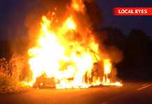 Ung mand redder sig ud af bil: Kort efter står den i flammer