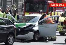 Tre biler hamrede onsdag sammen på den stærkt befærdede Nørre Søgade i et klassisk harmonikasammenstød. Den bagerste bil var en elektrisk bybil (en lejebil)....