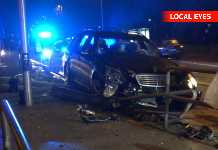 Mercedes hamrer gennem vejarbejde og havner oven på autoværn