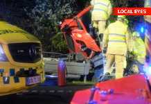 Lastbilchauffør fastklemt i knust førerhus efter kollision med rendegraver