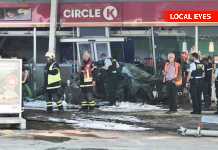 Løbsk lastbil i vild ulykke på tankstation: Flere biler ramt