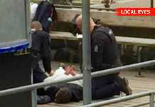 Se billederne: Her bliver mulig bankrøver overmandet af betjente