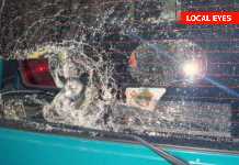En færdselsbetjent fik mandag kastet en sten i hovedet under sit arbejde med automatisk hastighedskontrol.Han sad inde i grøn VW Transporter på Buddinge...