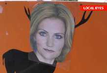 Spøgefugle har været på spil ved Gribskov i Nordsjælland og har indsat et billede af Helle Thorning's ansigt på plakater fra trafikkampagnen 'Dyr-t bekendtskab'....