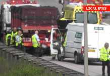 En lille personbil blev knust, og en mand livsfarligt kvæstet da en beruset fører af en varevogn overså den lille Fiat Punto som holdt...