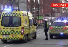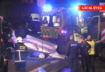 Ulykkested: Se Falckbil tæt på at køre ind i mørk helikopter