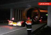 Vindmølletransport påkører motorvejsbro i Aarhus