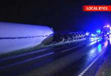 Sættevogn med vindmølle er knækket sammen nær Esbjerg