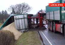 En anhænger til en lastbil væltede onsdag formiddag på Herpstedvej ved Tønder.Anhængeren er fyldt med dyrefoder og ulykken spærrer vejen for trafik.Ingen...