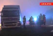 Lørdag morgen overså en lastbilchauffør en rundkørsel formentlig på grund af den meget tætte tåge. Lastbilen kørte tværs henover rundkørslen og fortsatte 100 meter...