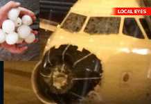 Store hagl tvinger fly ned: Ruderne i cockpittet flækkede