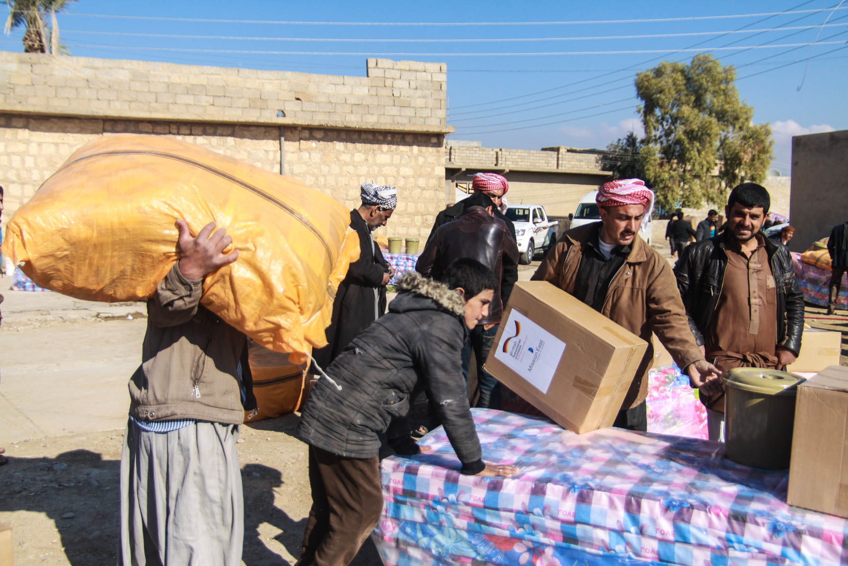 Tirsdag den 16. januar modtog 153 familier i en landsby nordøst for Mosul centrum såkaldte etableringspakker til gavn for i alt 900 personer. Pakkerne indeholder blandt andet madrasser, tæpper, hygiejneudstyr, køkkenudstyr, gaskomfur og brændstof.