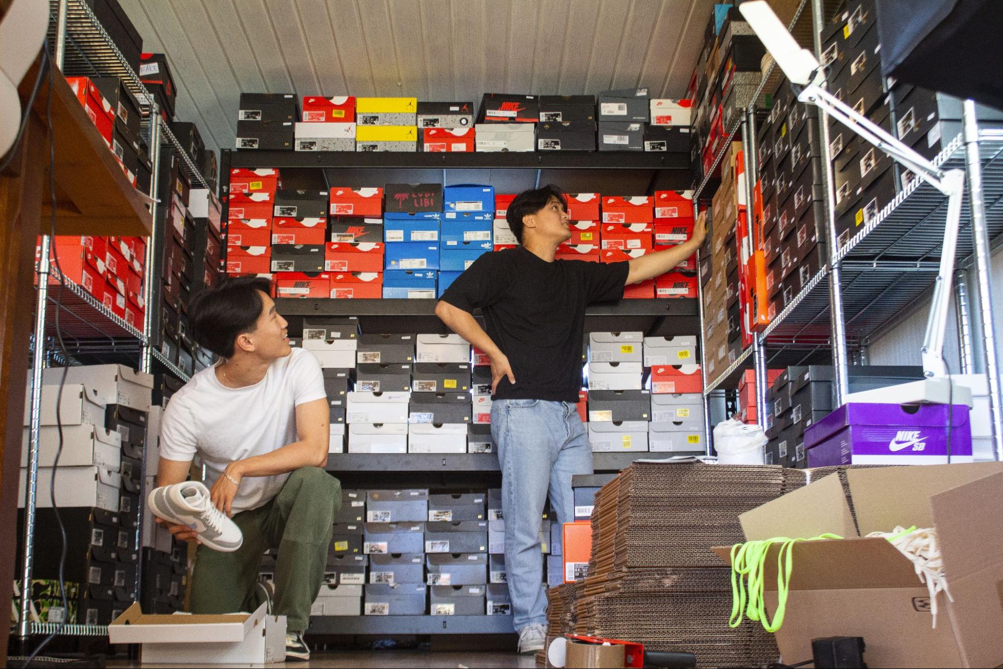 Sådan ser maskinrummet ud i forretning, som de to brødre, Dan og Nam Dinh, har skabt sammen. De køber og sælger sjældne og eksklusive sneakers såsom Yeezys, Air Jordans, Nike Dunks og flere.