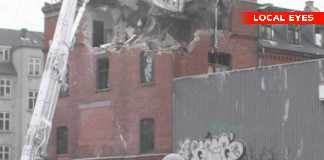 En nedrivningsmaskine overmalet med sølvfarve, så man ikke kan se hvilket firma den kommer fra, begyndte mandag kl. 8 nedrivningen af Ungdomshuset.Inden havde...